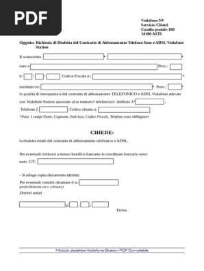 Disdetta Vodafone 2022 - Guida e Modulo da Scaricare 15 Aug 2022 — In alternativa, è possibile inviare il modello disdetta Vodafone tramite raccomandata, spedendolo all'indirizzo Servizio Clienti Vodafone c/o - ... moduli per richieste relative a recesso e device - Vodafone Se vuoi recedere dal tuo contratto abbonamento, rete fissa o SIM ricaricabile. Scopri tutte le informazioni di cui hai bisogno nella pagina dedicata. Richiesta ...