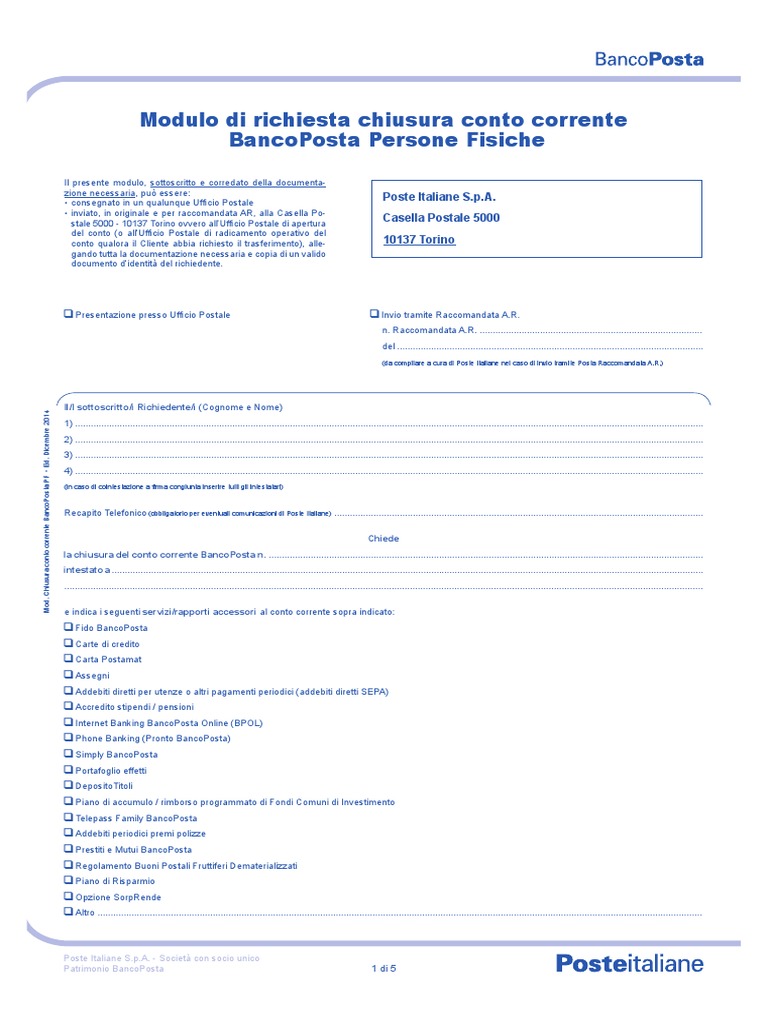 Fac Simile Richiesta Estinzione Conto corrente - Moduli Editabili Apr 26, 2022 ... La lettera deve essere alla Banca e risulta essere necessario inserire tutti i dati del conto corrente da chiudere, come il titolare e l'IBAN. Modulo chiusura estinzione conto corrente Banco BPM Compila online il modulo chiusura conto corrente Banco BPM pdf compilabile precompilato per richiedere la chiusura estinzione conto Banco BPM e invia ...