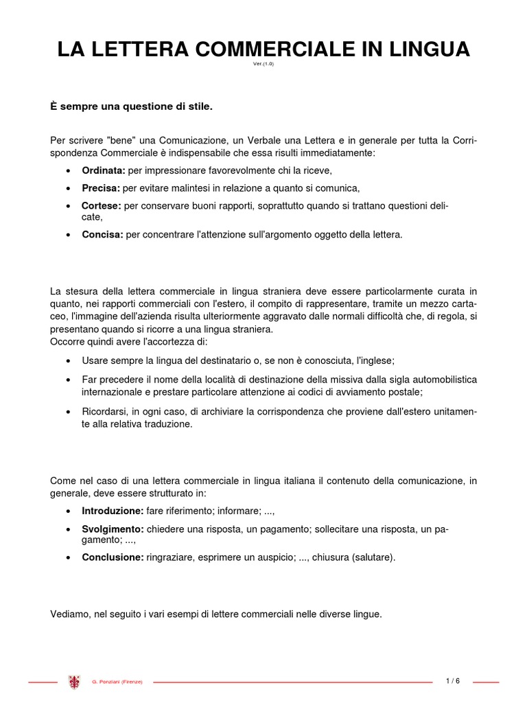 Come scrivere una lettera commerciale inglese - ILS Milano - Blog Per conoscere queste regole, t'invitiamo a leggere il nostro articolo Come scrivere una lettera formale in inglese o una email. Struttura lettera commerciale: intestazione e introduzione. Per iniziare, è fondamentale capire come scrivere l'intestazione e quali sono le formule di apertura di una lettera commerciale. Per quanto riguarda l ...