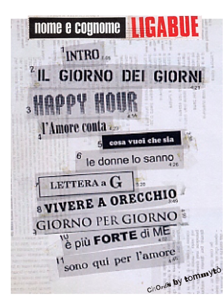 Tutti i testi ufficiali di Ligabue | Ligabue.com In questa pagina trovi i testi di tutte le canzoni scritte da Luciano Ligabue. Scorri gli album e clicca sui titoli per leggere i testi completi. ... Lettera a G Vivere a orecchio Giorno per giorno È più forte di me Sono qui per l'amore. Giro d'Italia (2003) CD3