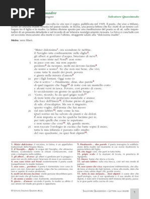 PDF Lettera Alla Madre - I Nostri Tempi Supplementari quindi scrive alla madre. La madre si meraviglierà della lettera ricevuta e ripenserà a «quel ragazzo che fuggì di notte con un mantello corto / e alcuni versi in tasca». E il poeta ricorda il momento del distacco dalla madre e dalla terra nativa: «Certo, ricordo, fu da quel grigio scalo / di treni lenti che Quotidiano Nazionale | La madre di Quasimodo - Cultura - quotidiano.net La madre di Quasimodo VEDI I VIDEO "Lettera alla madre" letta dall'autore (da 4:16; da un servizio televisivo in occasione del Premio Nobel, 1959) , "Alle fronde dei salici" , "Ed è ... La lettera alla madre di Salvatore Quasimodo - Sul Romanzo La lettera alla madre di Salvatore Quasimodo. Pubblicata nel 1949, la raccolta di poesie La vita non è sogno, contiene anche una lettera di Salvatore Quasimodo alla madre, che molto probabilmente risale a un anno prima dalla morte della donna. Lettera alla madre, che precede di dieci anni il Premio Nobel per la Letteratura che sarà conferito ... "Supplica a mia madre", la poesia di Pier Paolo Pasolini Un inno all'amore a alla libertà. "Supplica a mia madre" è la poesia di Pier Paolo Pasolini da dedicare a tutte le mamme. Una poesia contemporanea perché mette in scena il grande amore di una mamma nei riguardi di un figlio che vive le contraddizioni sociali della sua diversità. C'è da dire che "Supplica a mia madre" fu scritta ...